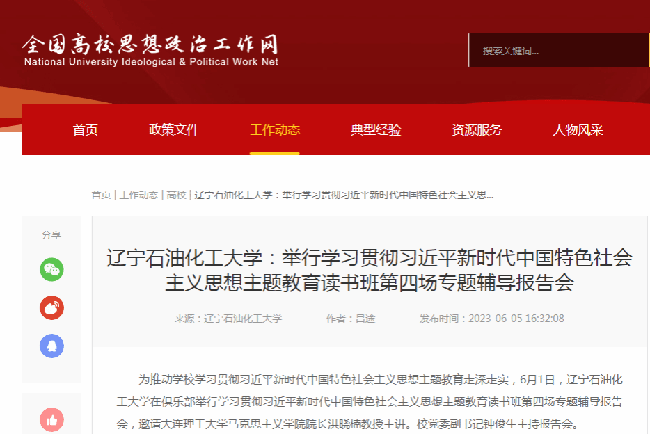 编者按:近日,全国高校思想政治工作网、辽宁日报·北国号等媒体平台对我校在俱乐部举行学习贯彻习近平新时代中国特色社会主义思想主题教育读书班第四场专题辅导报告会,邀请大连理工大学马克思主义学院院长洪晓楠教授主讲进行了宣传报道。现将相关报道转载如下: