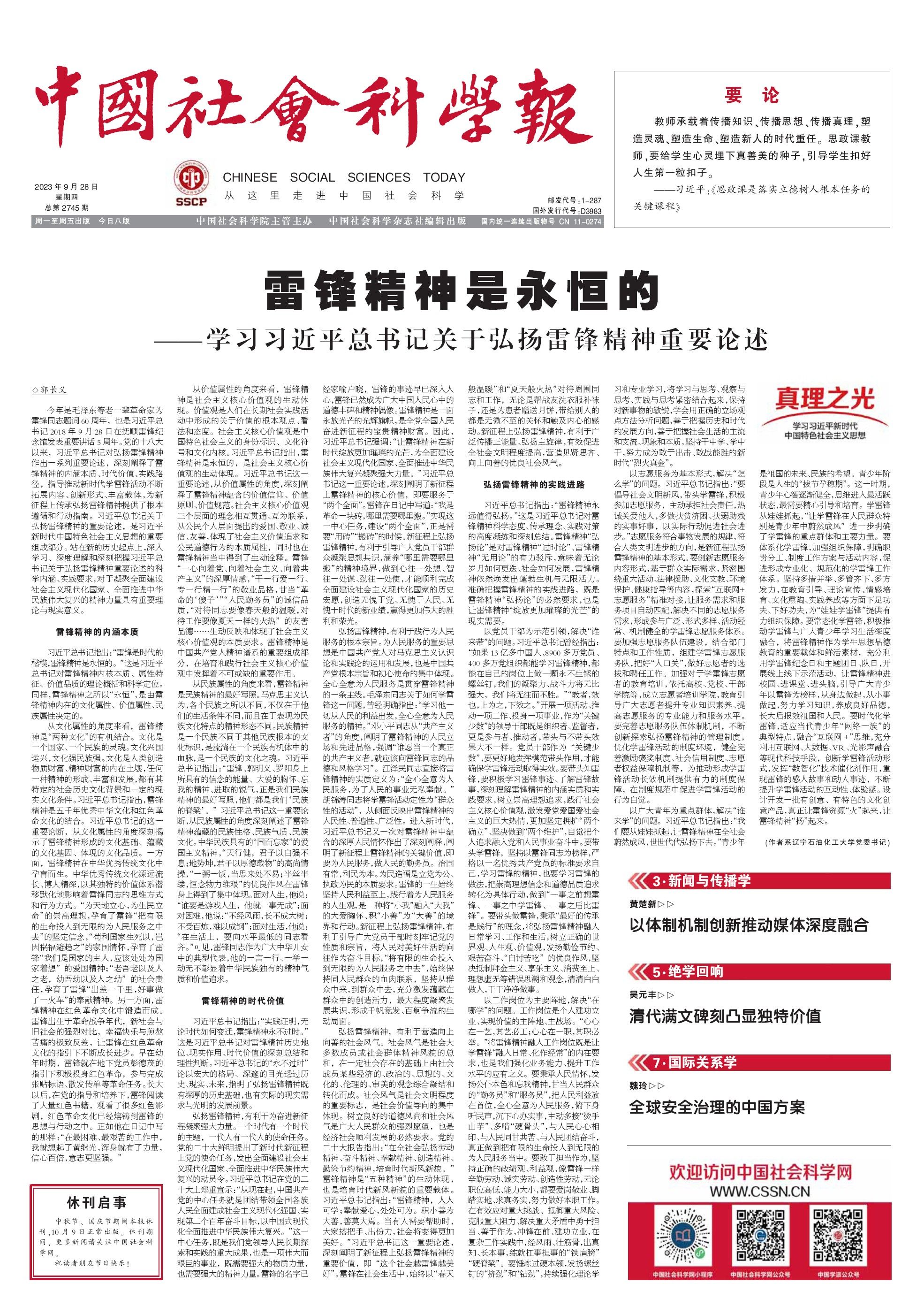 中国社会科学报、中国社会科学网:雷锋精神是永恒的——学习习近平总书记关于弘扬雷锋精神重要论述
