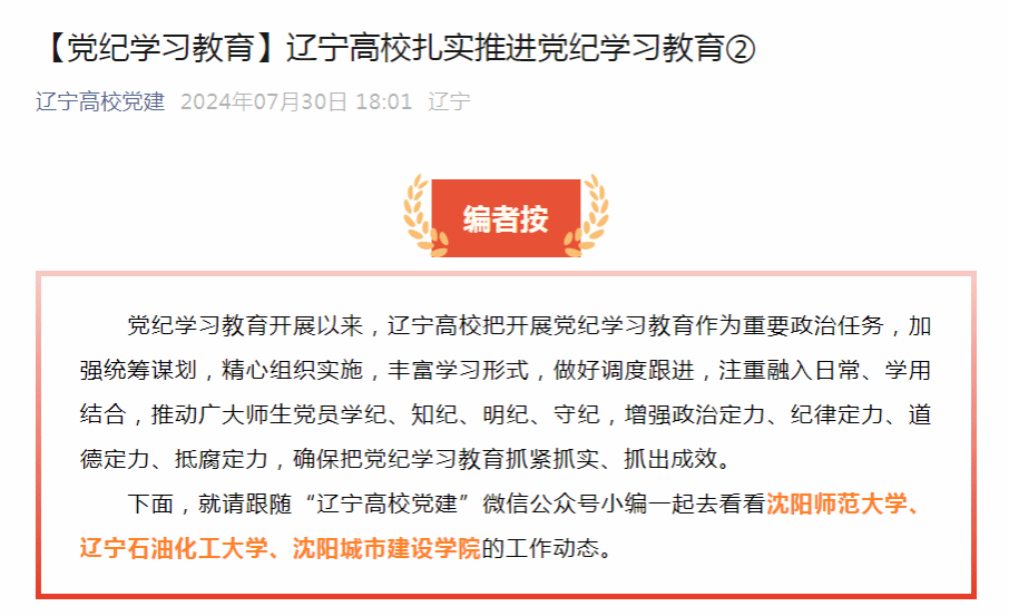 辽宁高校党建微信公众号:【党纪学习教育】辽宁高校扎实推进党纪学习教育②