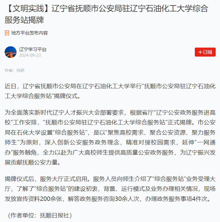 编者按:近日,辽宁省抚顺市公安局在国产亚洲综合一区二区三区_亚洲欧美日韩中文天堂_尤物在线观看视频不卡无码_国产最新精品亚洲2025不卡_亚洲成Av人在线观看片水蜜桃举行“抚顺市公安局驻国产亚洲综合一区二区三区_亚洲欧美日韩中文天堂_尤物在线观看视频不卡无码_国产最新精品亚洲2025不卡_亚洲成Av人在线观看片水蜜桃综合服务站”揭牌仪式。学习强国辽宁学习平台对此进行了宣传报道。现将相关报道转载如下: