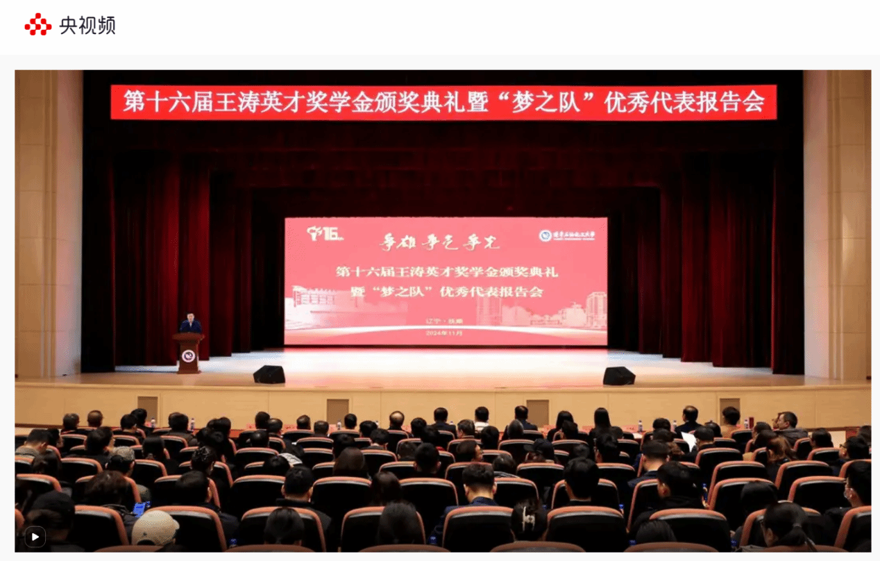 编者按:近日,由王涛英才奖学金管理委员会主办,我校承办的第十六届王涛英才奖学金颁奖典礼暨“梦之队”优秀代表报告会隆重举行。央视频、人民日报客户端•人民号、辽宁日报•辽望号、搜狐号对此进行了宣传报道。现将相关报道转载如下: