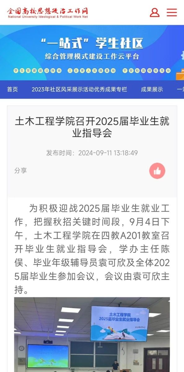 编者按:为积极迎战2025届毕业生就业工作,把握秋招关键时间段,土木工程学院召开2025届毕业生就业指导会,全力有序推进学院就业工作取得新突破。
