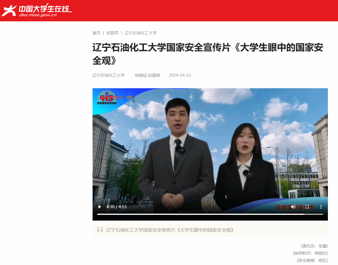 编者按:4·15国家安全教育日,学校党委宣传部组织学生拍摄国家安全宣传片《大学生眼中的国家安全观》,倡导师生维护国家安全,人人有责。教育部中国大学生在线网站对此进行了宣传。现将相关报道转载如下: