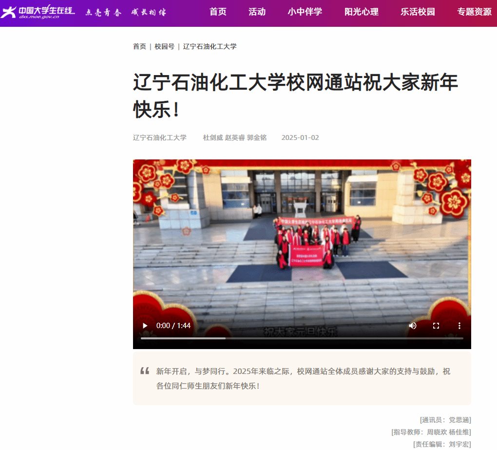编者按:1月2日,教育部中国大学生在线网站对我校新媒体学生制作的视频《国产亚洲综合一区二区三区_亚洲欧美日韩中文天堂_尤物在线观看视频不卡无码_国产最新精品亚洲2025不卡_亚洲成Av人在线观看片水蜜桃校网通站祝大家新年快乐!》进行了宣传报道。现将相关报道转载如下: