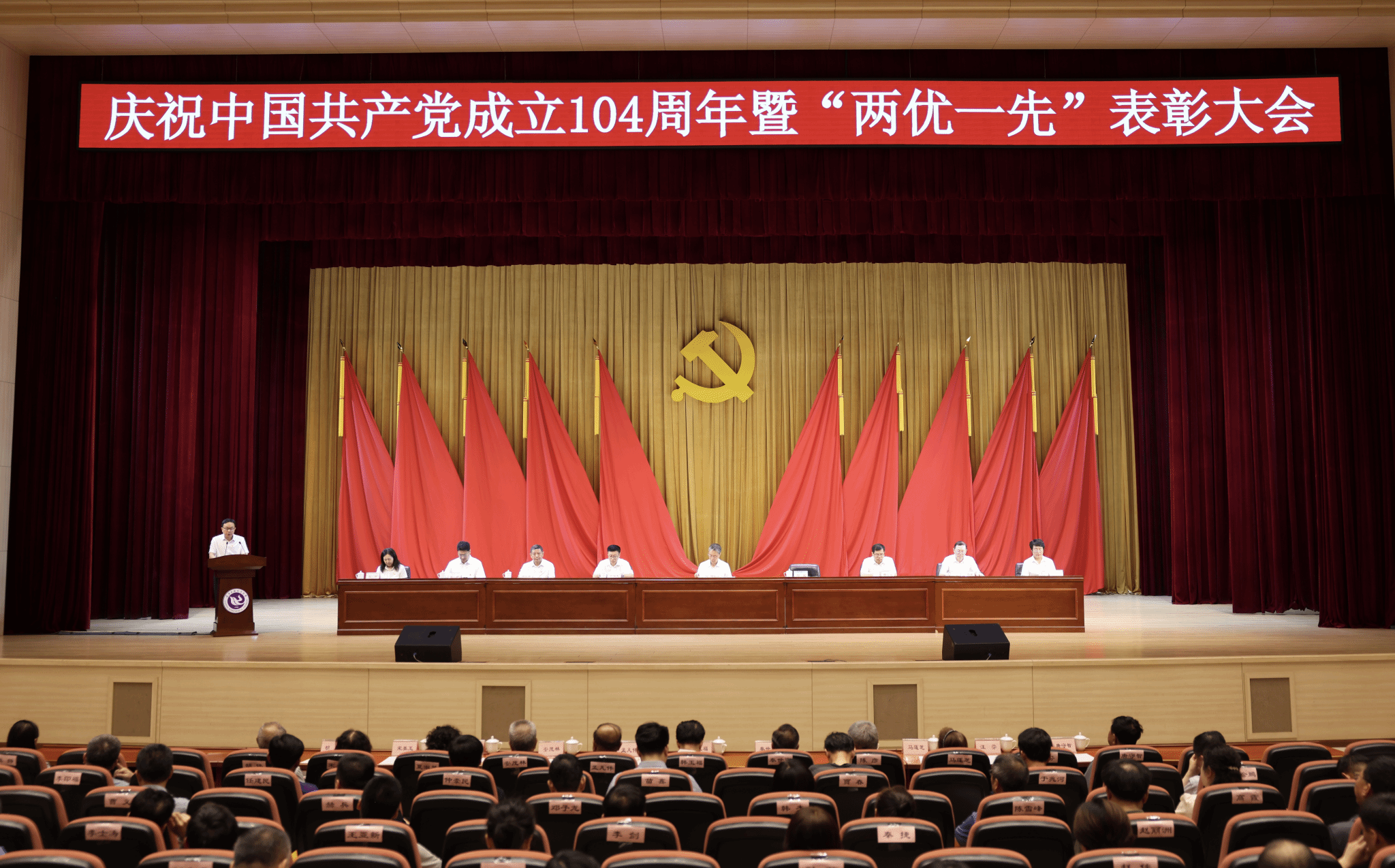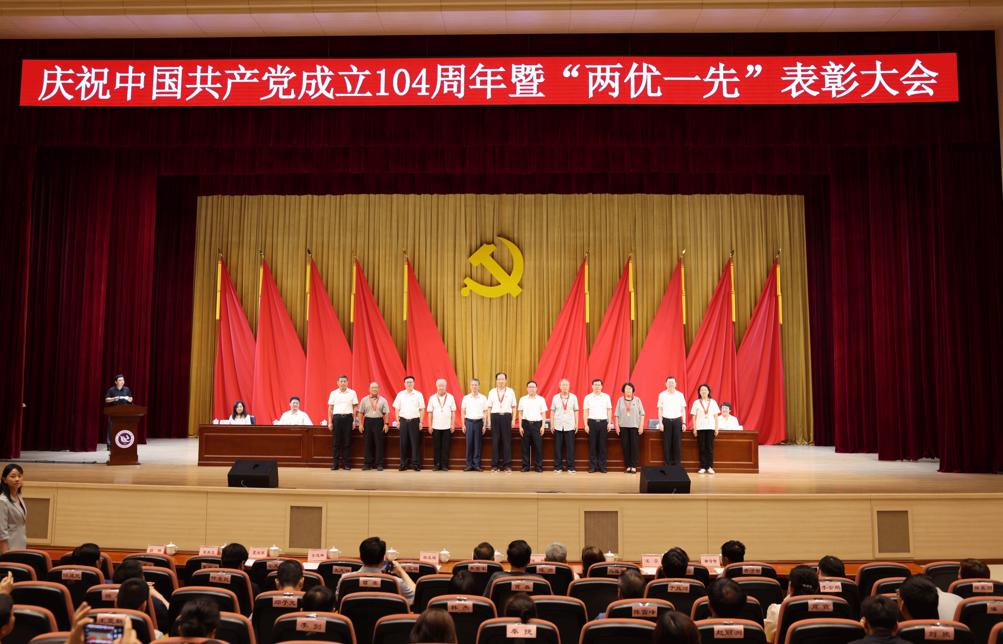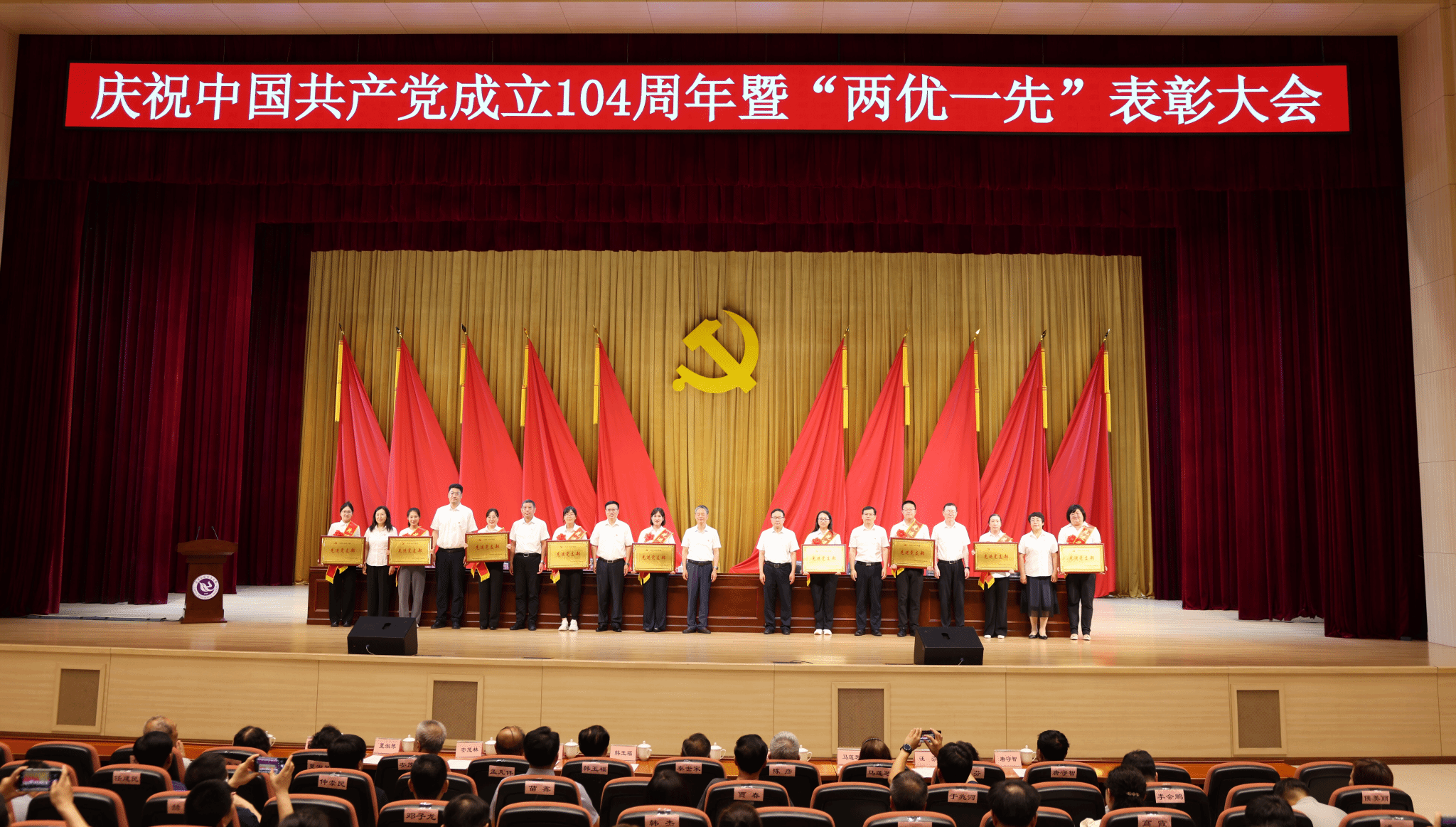 6月30日下午,学校党委召开2023-2025年度“两优一先”表彰大会,庆祝中国共产党成立104周年,深入学习贯彻习近平新时代中国特色社会主义思想,表彰优秀共产党员、优秀党务工作者、先进基层党组织,向学校党龄达到50周年的老党员颁发“光荣在党50年”纪念章。学校领导班子、处级干部、组织员、党支部书记、“两优一先”获得者、“光荣在党50年”老党员代表、师生党员代表参加了会议。会议由党委副书记钟俊生主持。