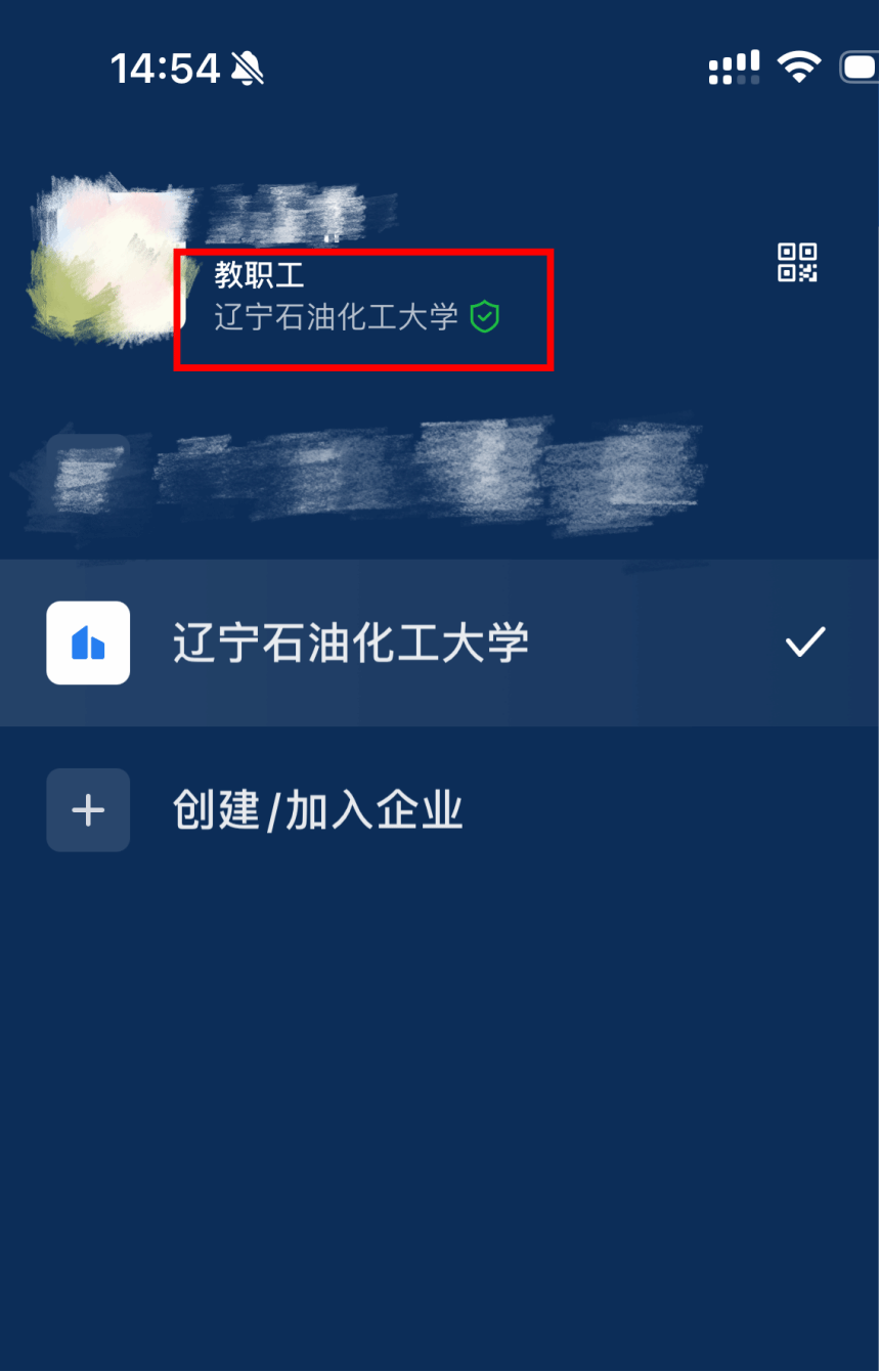 同时,请大家注意识别官方企业微信的标识,包括账号头像、昵称和认证信息等,避免加入非官方企业微信组织。有如下图所示的标识为我校官方认证的企业微信。
